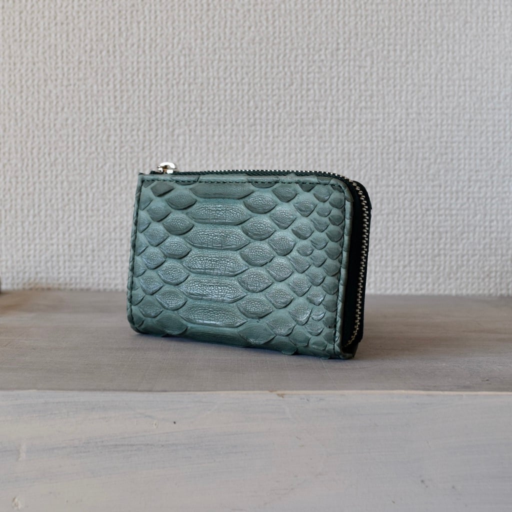 ■パイソン本革L字小銭入れ:ライトブルー(L/BL)