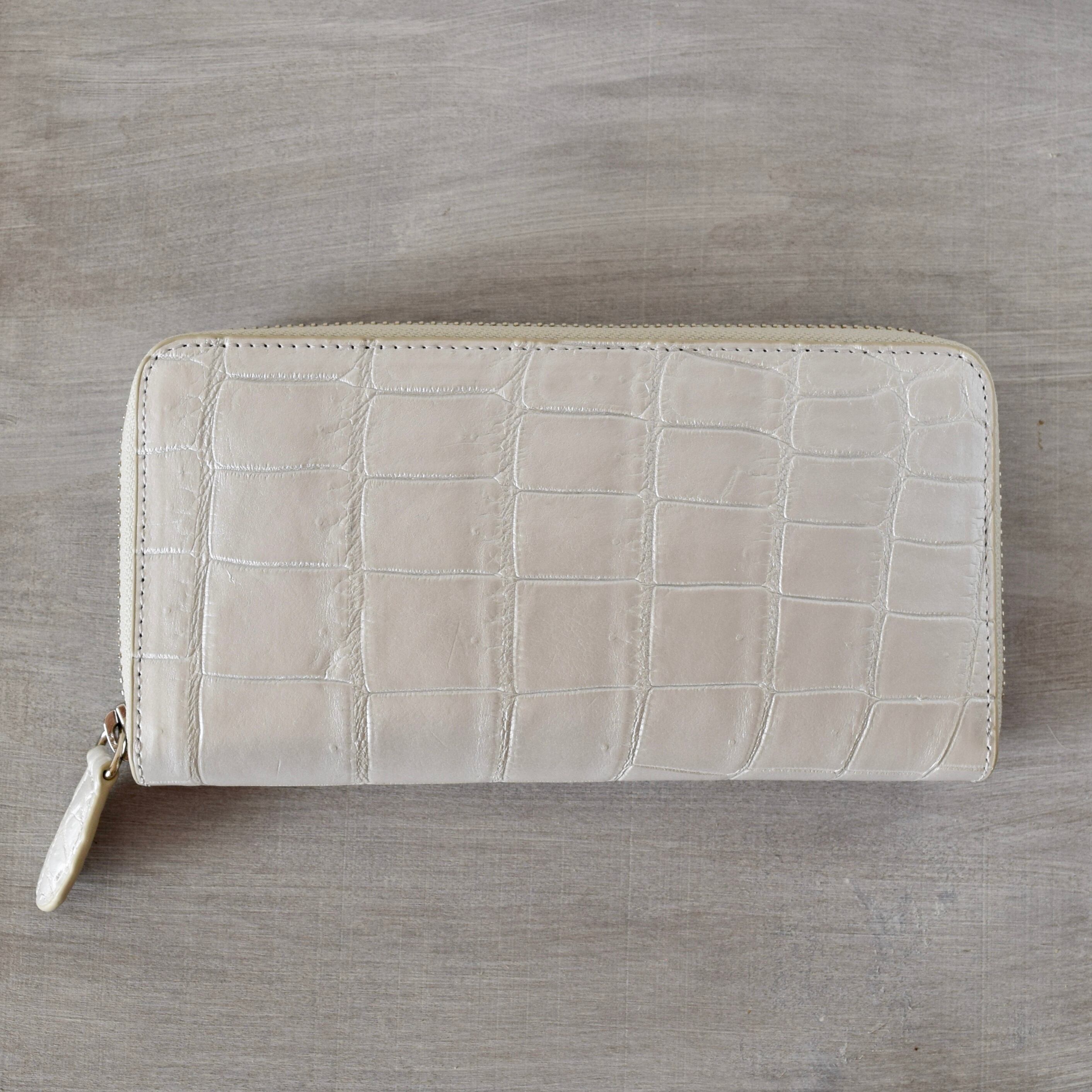 クロコダイル本革スモールラウンド財布/約18cmx9.0cm