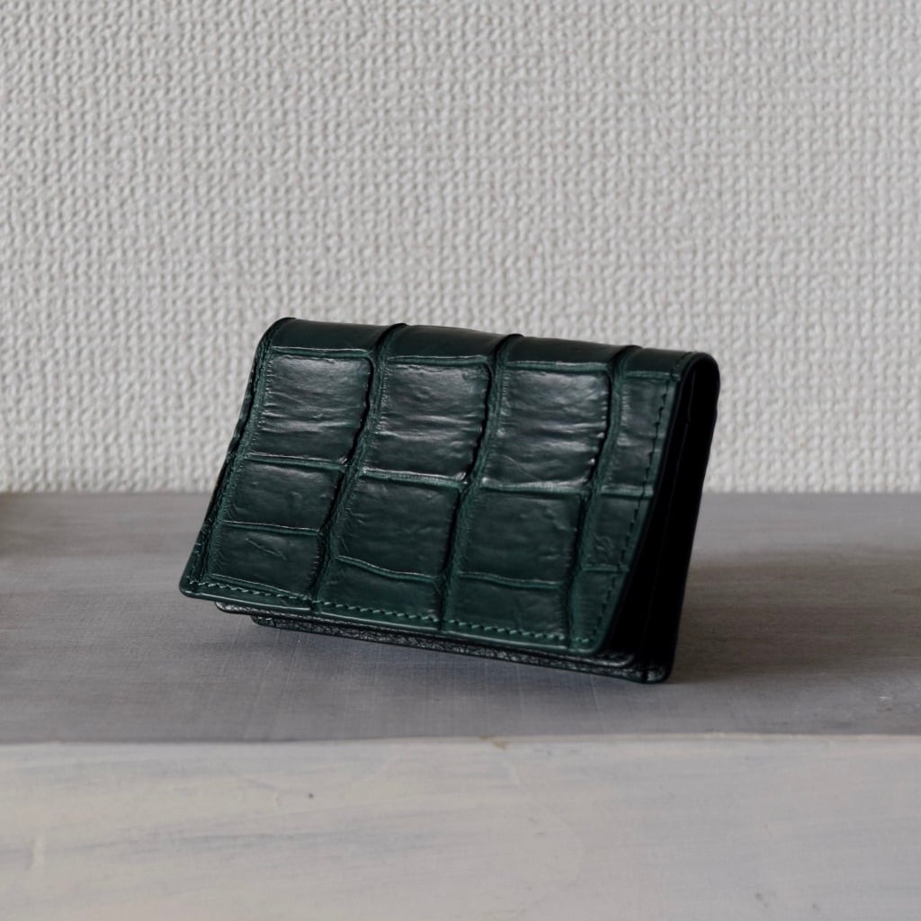 ■クロコダイル本革 クロコ名刺入れ(マチあり) グリーン(GR)