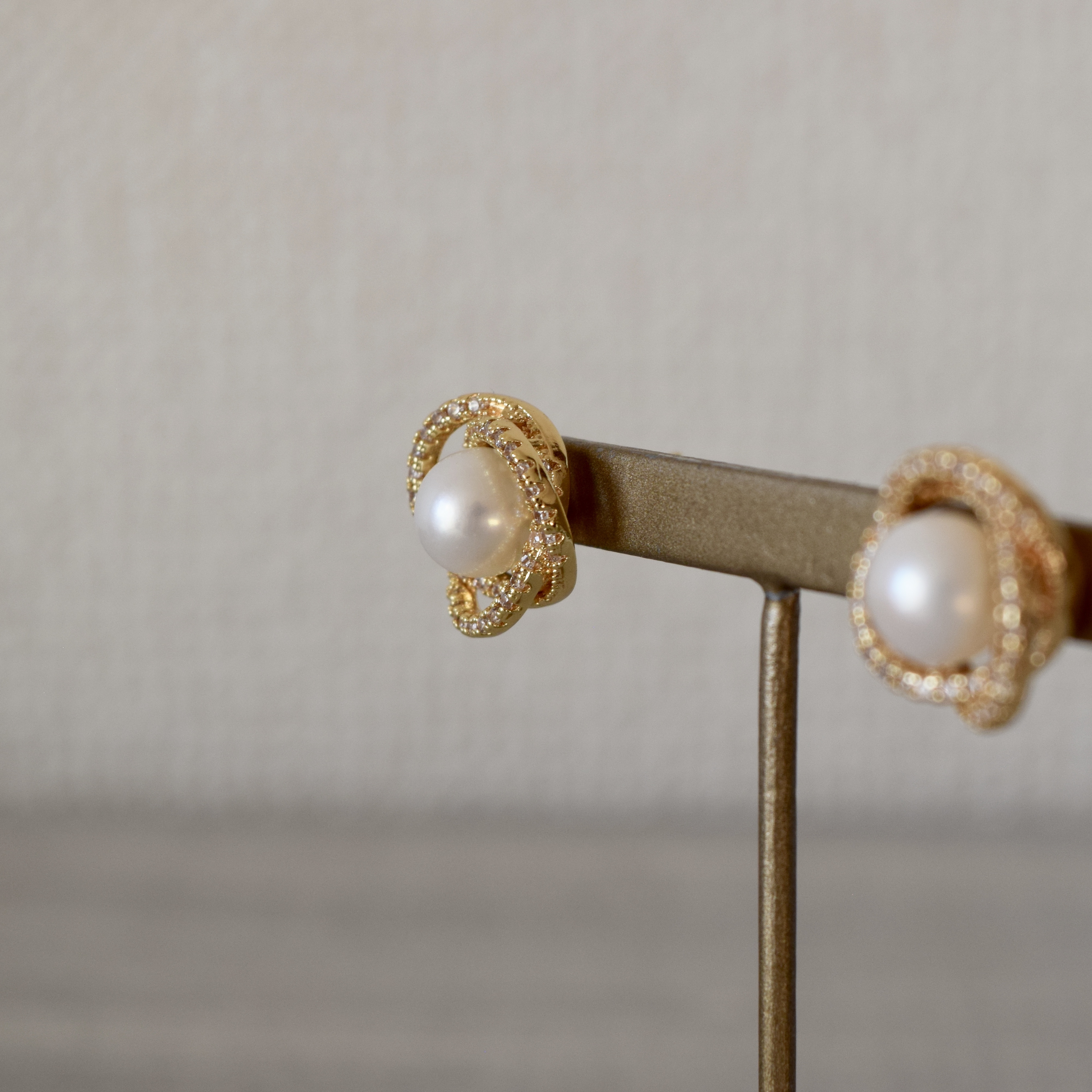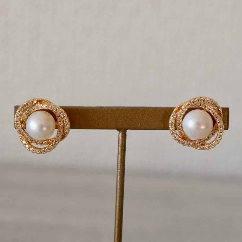 本商品は、キラキラとジルコニアが輝く枠の中に、8mm淡水パールが一粒あしらわれたアンティークな雰囲気漂うデザインの〝ピアス〟です。