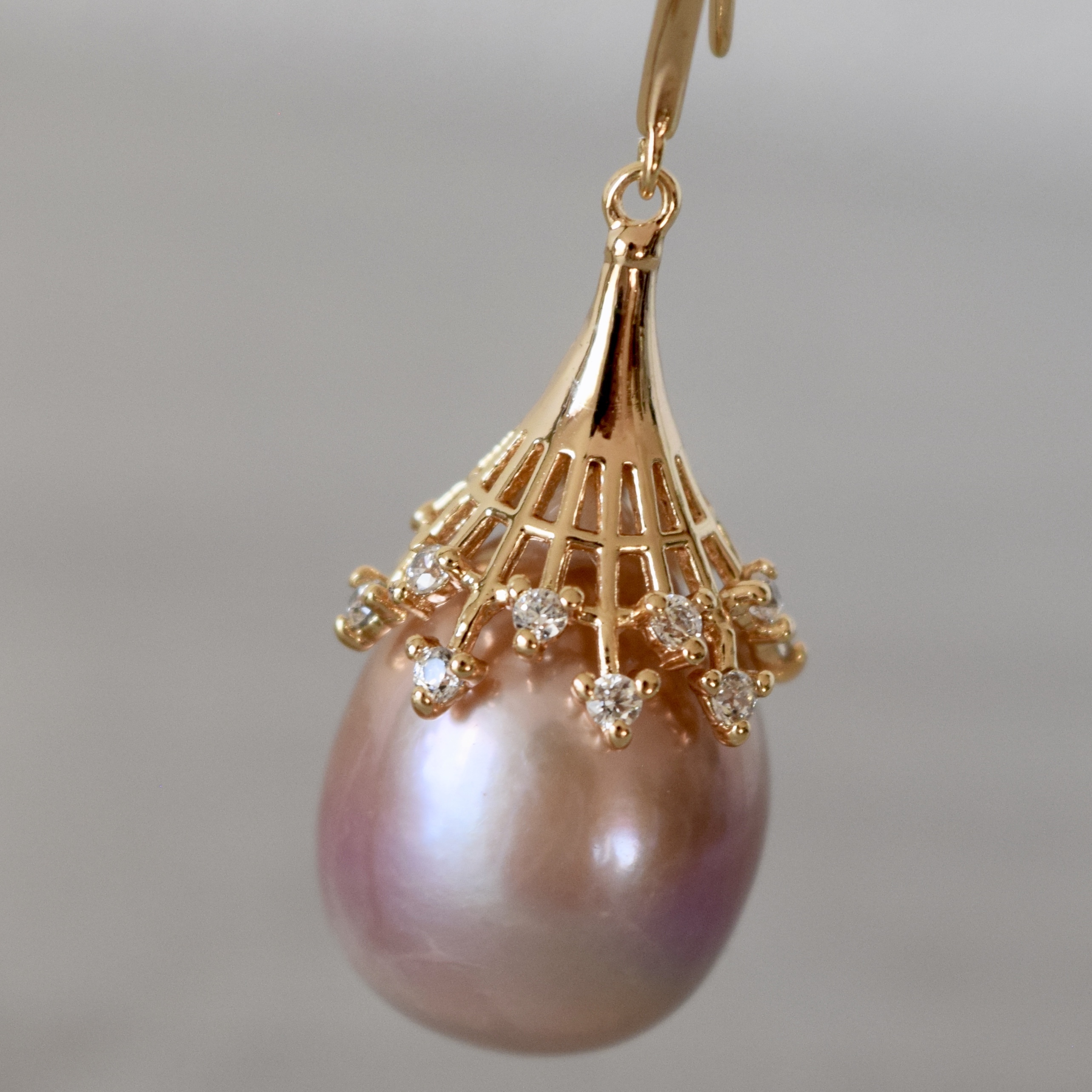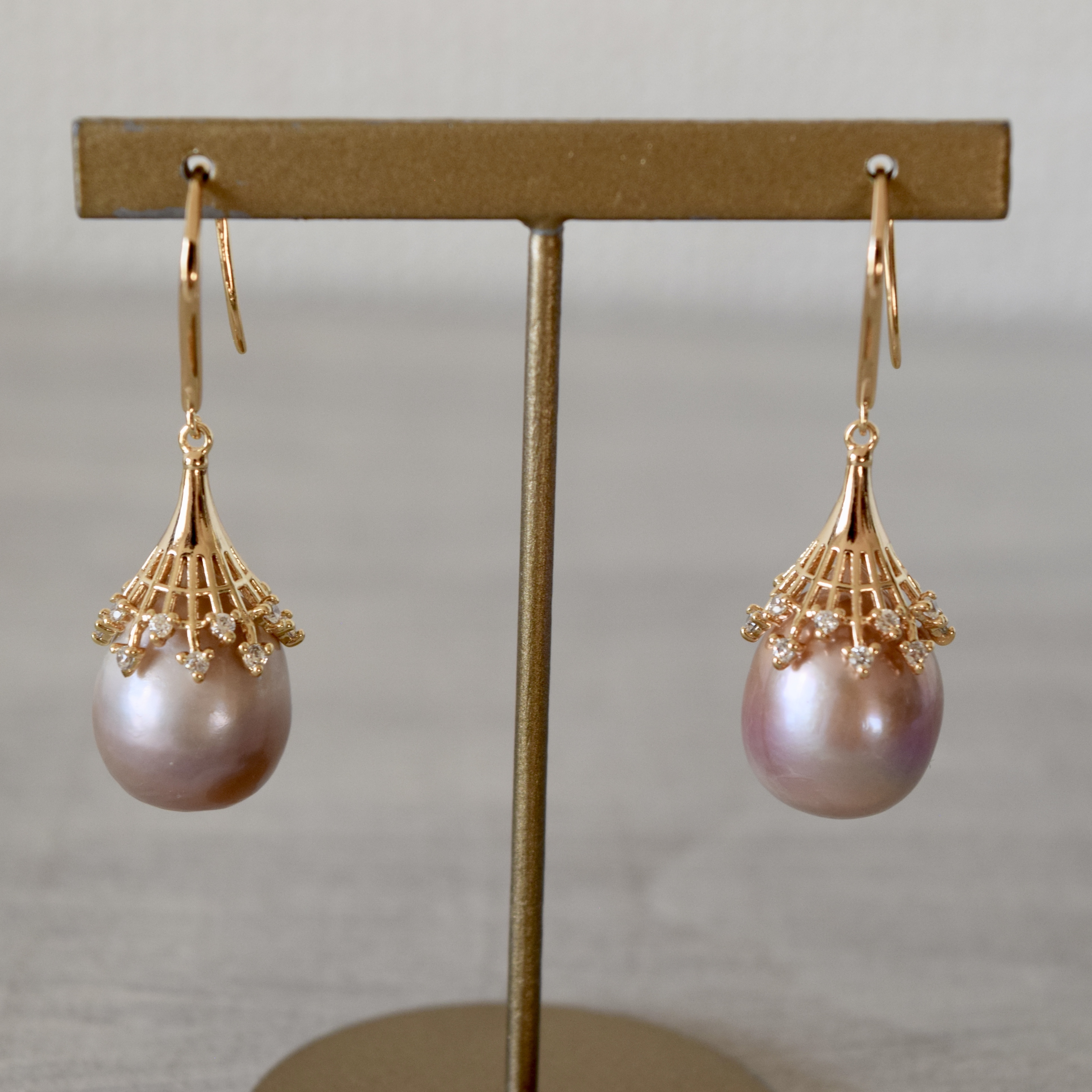 〈淡水パール〉ドロップピンクパールピアス/本体部分の高さ約2.6cm