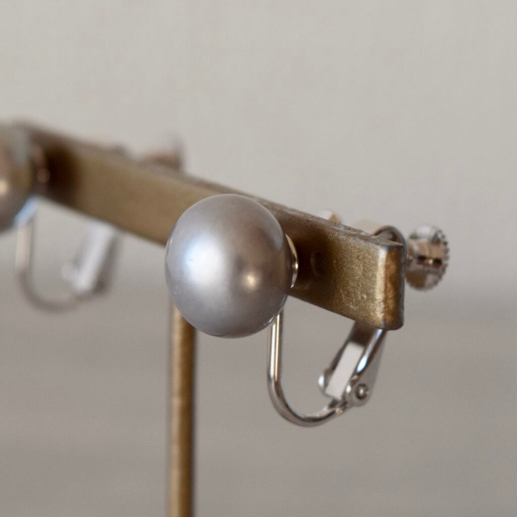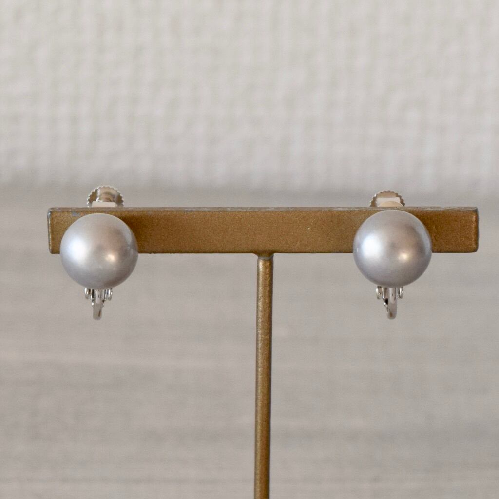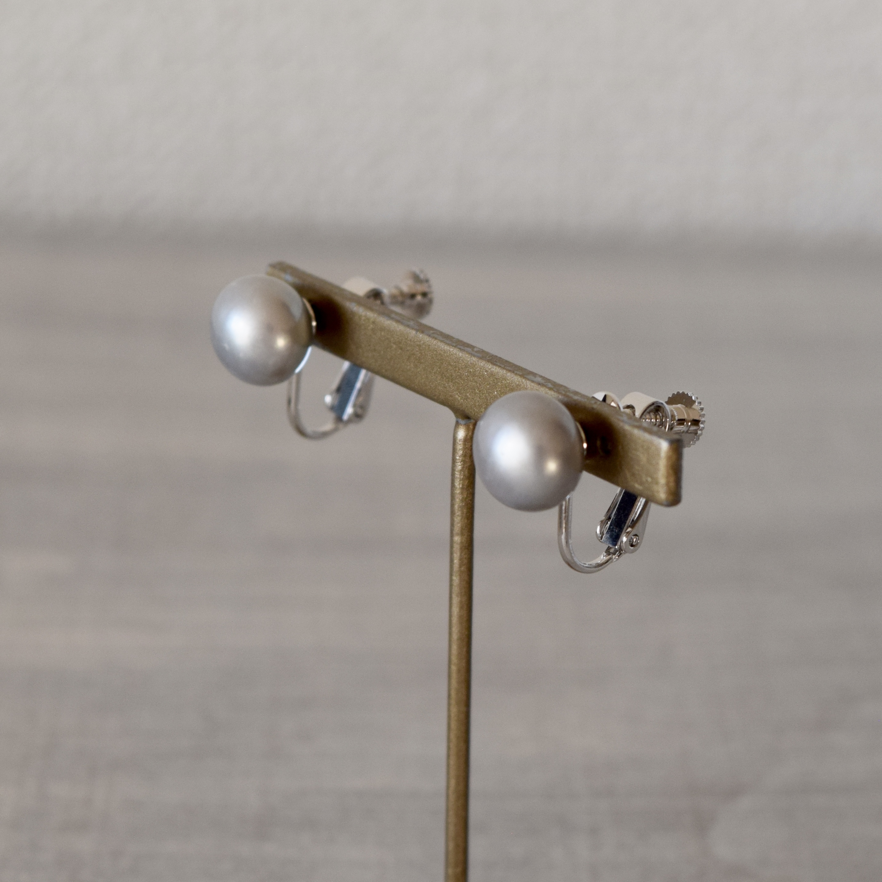 〈淡水パール〉シングルグレーパールイヤリング/約1.0cmx1.0cm